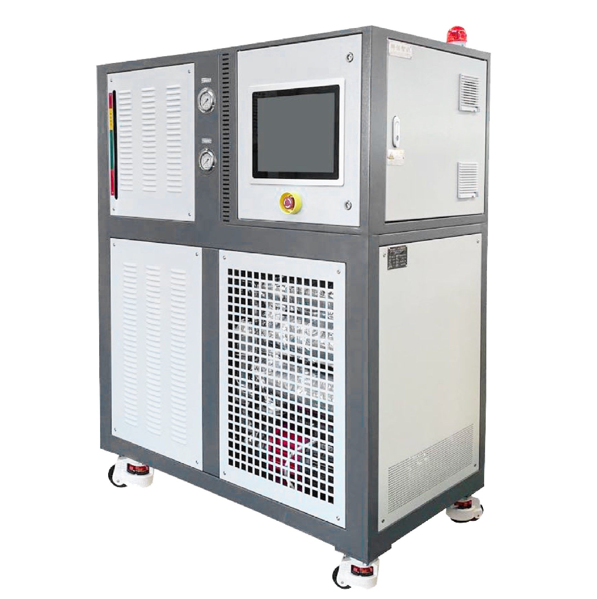 油溫機通常由加熱系統(tǒng)、冷卻系統(tǒng)、液體循環(huán)系統(tǒng)和控制系統(tǒng)組成。加熱系統(tǒng)采用電熱元件或者燃燒器將液體加熱至設定的溫度,而冷卻系統(tǒng)則通過冷卻器或者冷卻介質來降低液體溫度。液體循環(huán)系統(tǒng)通過泵將液體從容器中抽出并循環(huán)流動,在加熱或冷卻后再返回容器。